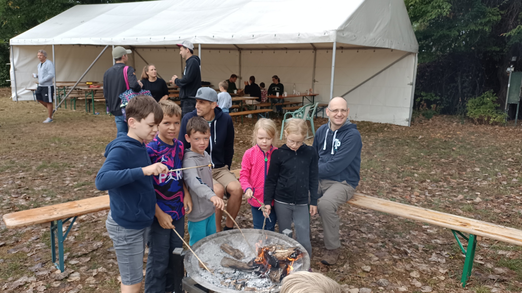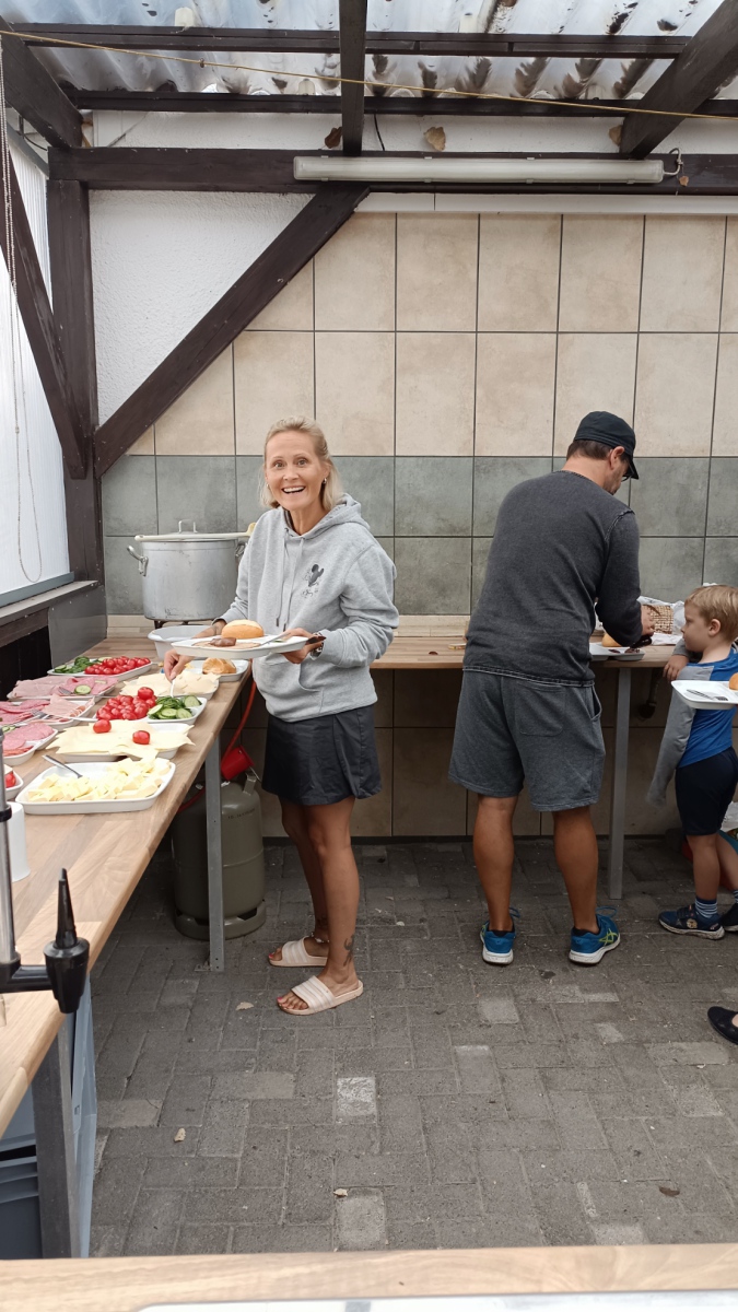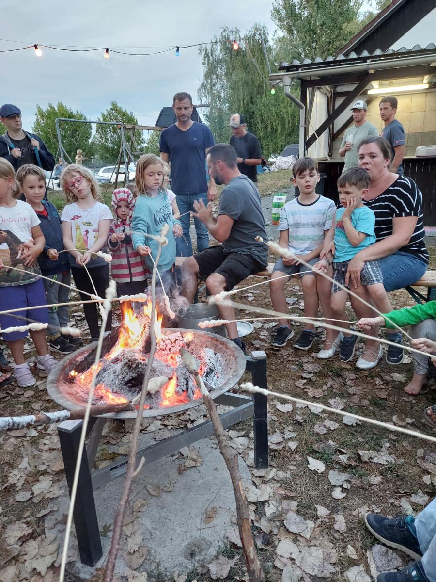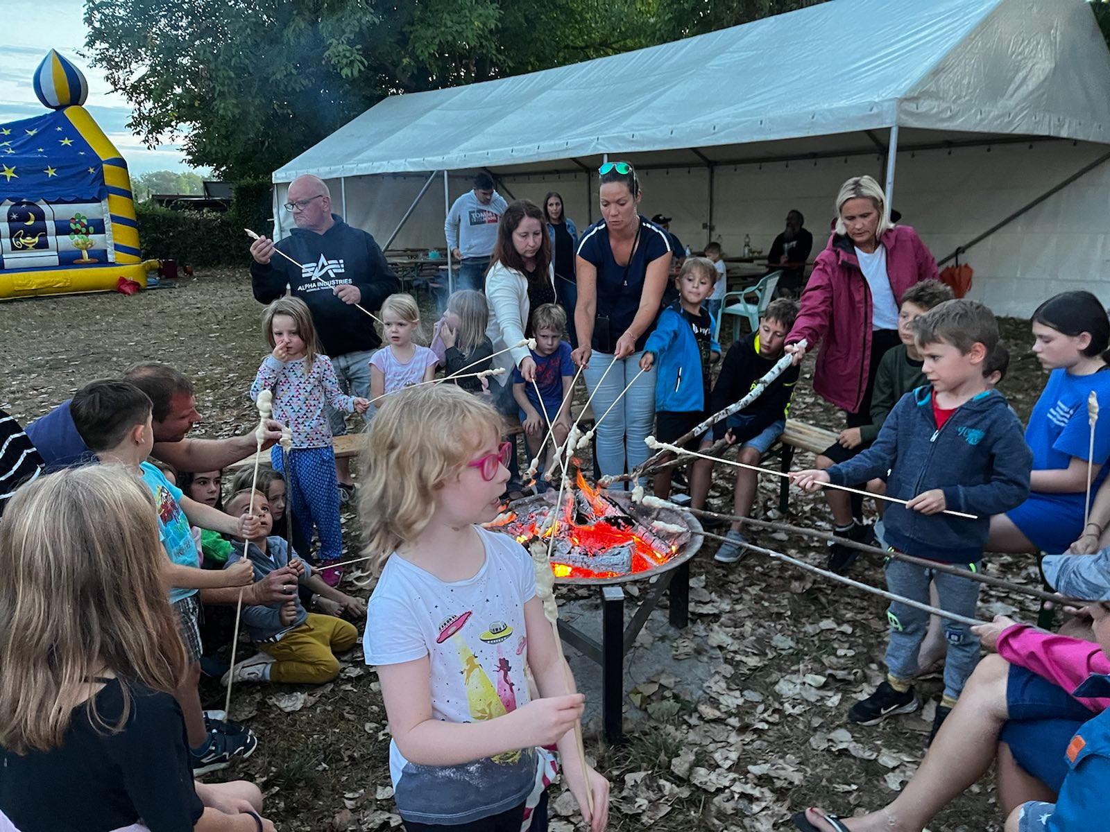 Endlich war es wieder soweit: die Zeit war reif für ein Eltern-Kind-Zeltlager. Nach zwei Jahren Corona-Pause konnte endlich wieder das beliebte Zeltlager durchgeführt werden. Ganz ohne große Werbe-Kampagne haben sich knapp 40 Kinder mit ihren Eltern auf unserem Vereinsgelände eingefunden. Das letzte Ferienwochenende hat sich als Termin bewährt. Voller Vorfreude haben die Kleinen – mit Hilfe der Eltern – ihre Zelte aufgebaut, bei freier Platzwahl. Ein Karussell und eine Hüpfburg waren wieder am Start und im Dauereinsatz. Getreu dem Motto: Raus aus dem Alltag – rein in die Natur konnte nach belieben getobt oder gechillt werden. Das gemütliche Beisammensein am Lagerfeuer war ebenso gemütlich wie die Nachwanderung stimmungsvoll war: ein ruhig dahinfließender, nebelumwobener Rhein, auf dem vor dem erleuchteten Kraftwerk ein Flusskreuzfahrtschiff dahingleitet. Was für ein Bild!