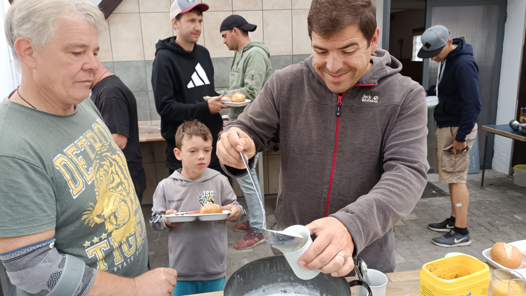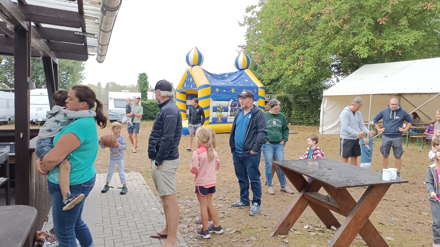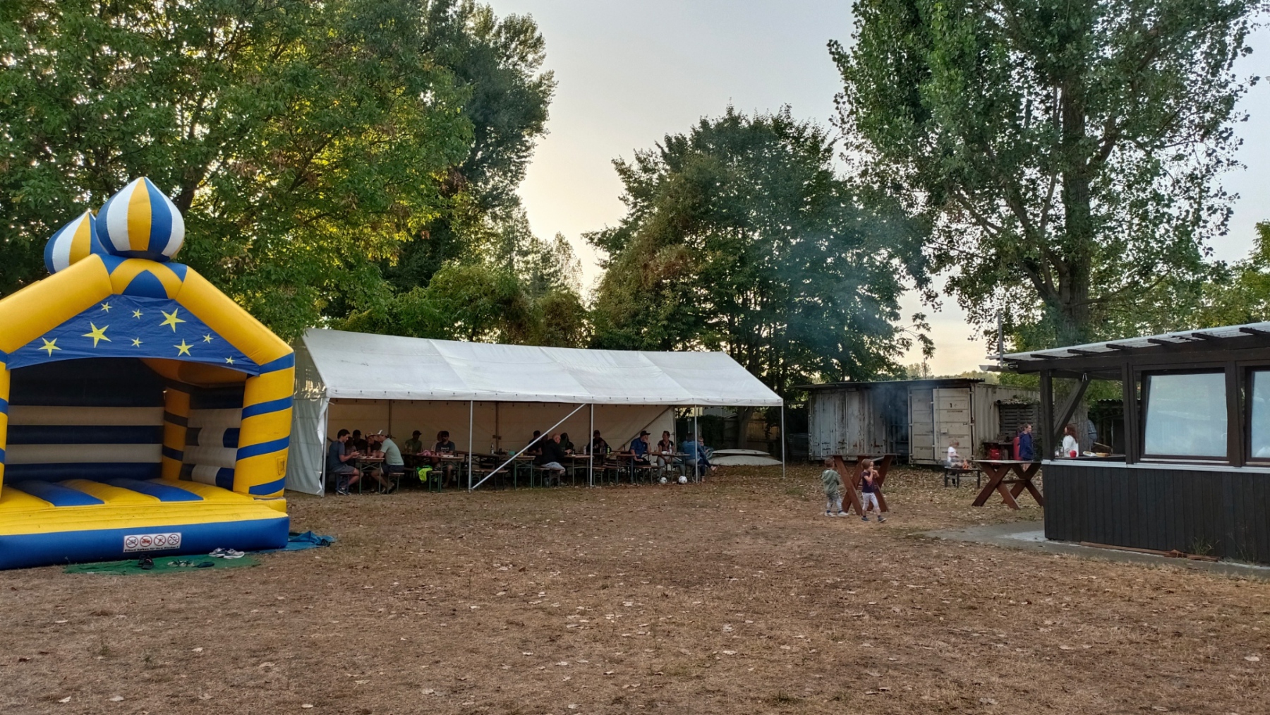 Endlich war es wieder soweit: die Zeit war reif für ein Eltern-Kind-Zeltlager. Nach zwei Jahren Corona-Pause konnte endlich wieder das beliebte Zeltlager durchgeführt werden. Ganz ohne große Werbe-Kampagne haben sich knapp 40 Kinder mit ihren Eltern auf unserem Vereinsgelände eingefunden. Das letzte Ferienwochenende hat sich als Termin bewährt. Voller Vorfreude haben die Kleinen – mit Hilfe der Eltern – ihre Zelte aufgebaut, bei freier Platzwahl. Ein Karussell und eine Hüpfburg waren wieder am Start und im Dauereinsatz. Getreu dem Motto: Raus aus dem Alltag – rein in die Natur konnte nach belieben getobt oder gechillt werden. Das gemütliche Beisammensein am Lagerfeuer war ebenso gemütlich wie die Nachwanderung stimmungsvoll war: ein ruhig dahinfließender, nebelumwobener Rhein, auf dem vor dem erleuchteten Kraftwerk ein Flusskreuzfahrtschiff dahingleitet. Was für ein Bild!