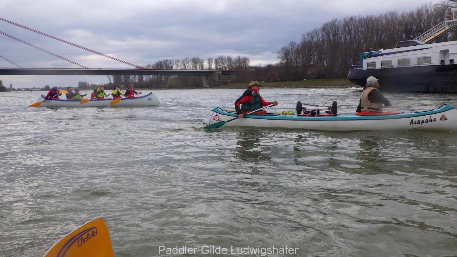 Die Entscheidung unter der Rheinbrücke bei Speyer Pause zumachen, erwies sich als richtig, setzte doch leichter Regen ein. Ohne besondere Vorkommnisse aber mit besonderer Paddeltechnik im Jugendcanadier ging es die restliche Strecke bei eher ungemütlichem Wetter weiter bis zu unserem Bootshaus, welches wir 15:30 erreichten.