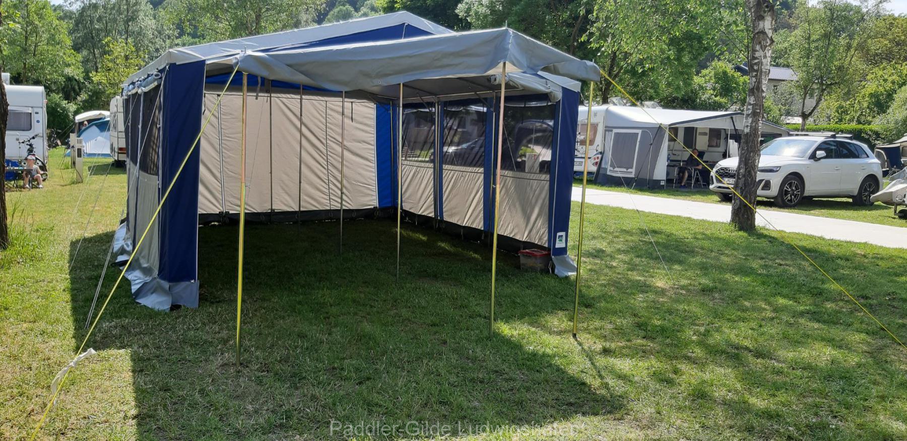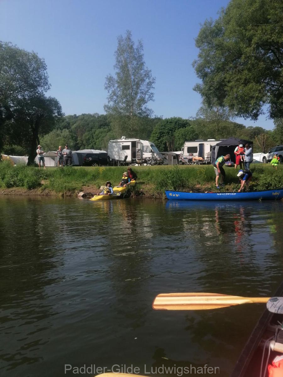 Die Paddler der PGL verbrachten die Pfingstfreizeit von Freitag, 26. Mai bis Montag, 29. Mai 2023 ganz traditionell in Wallendorf-Pont in Luxemburg. Die Gruppe bestand aus 32 Personen, darunter 11 Kinder und Jugendliche – dieses Jahr etwas weniger, das war den Pfingstferien geschuldet, die erstmalig länger dauern und deshalb viele Familien in Urlaub gefahren sind. Einige Erwachsene waren früher angereist und haben am Freitagmittag schon das Küchenzelt für die Jugend aufgebaut, so dass diese nur noch die restliche Infrastruktur aus dem Bus ausräumen und ihre Schlafzelte aufbauen mussten. Dann ging es ans Abendessen. Die leckere Tomatensoße ist von Silke schon zu Hause zubereitet worden, der Salat war geputzt und so mussten nur noch die Nudeln gekocht werden und der Abend war frei zum Spielen, rennen, plaudern.