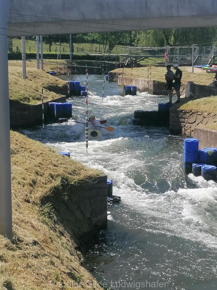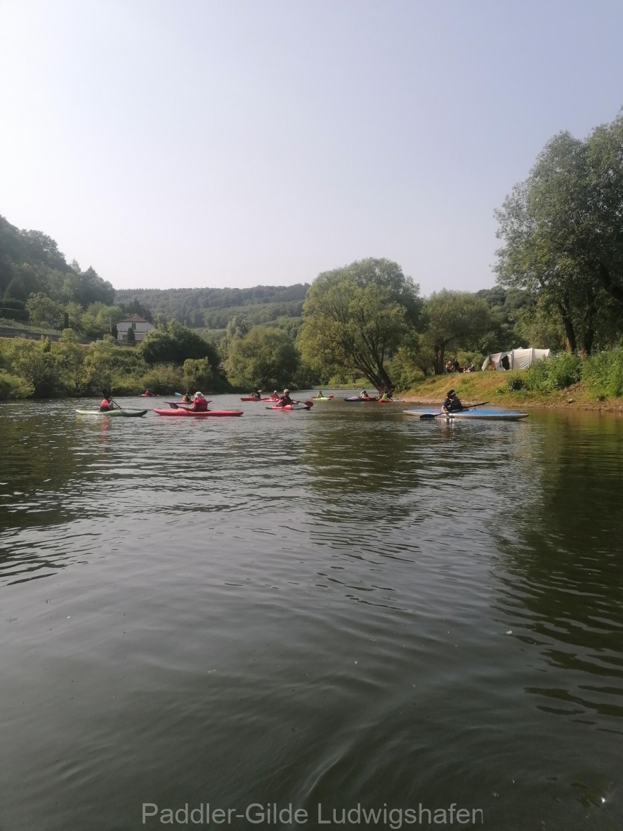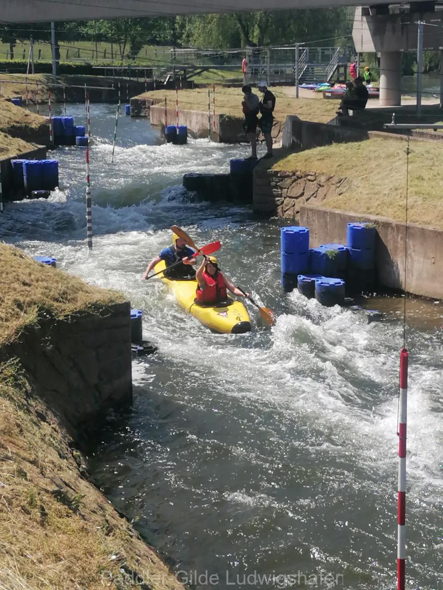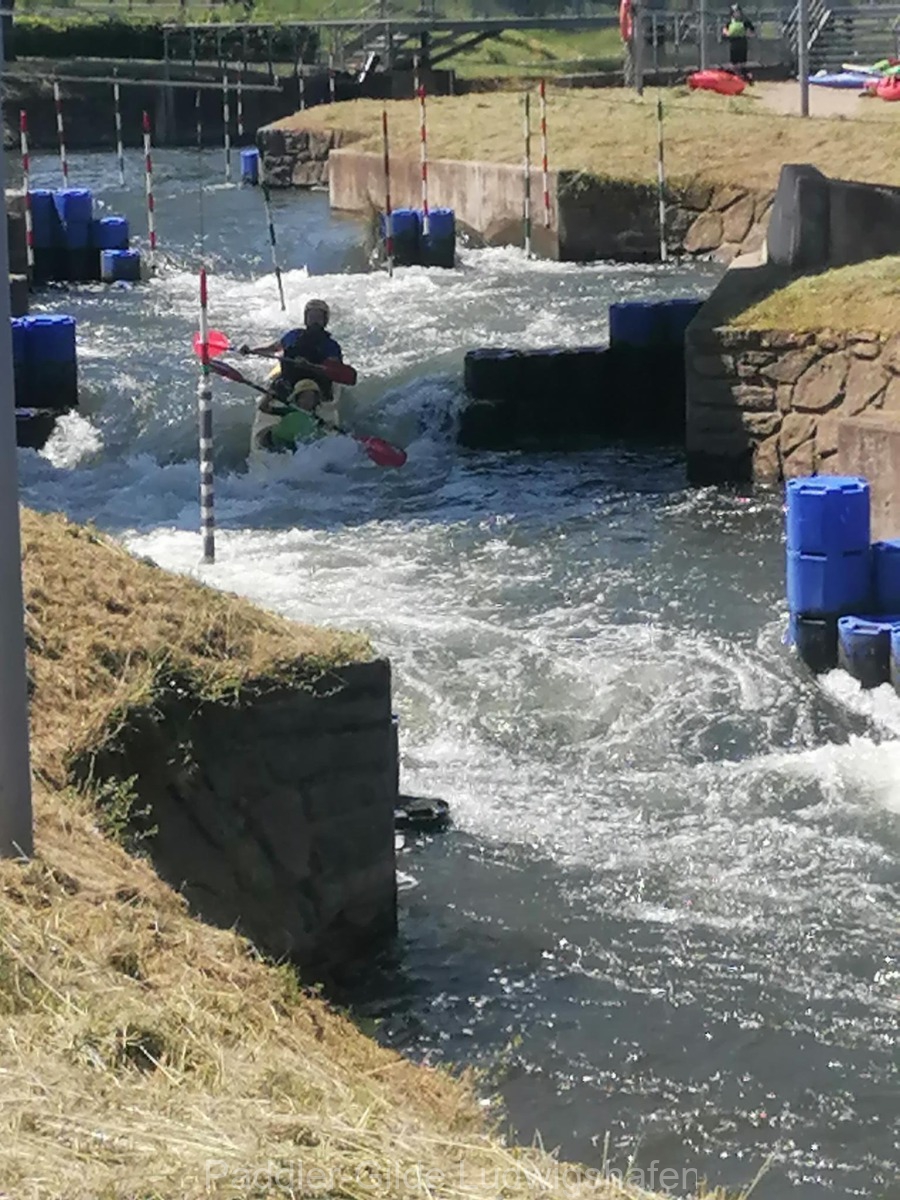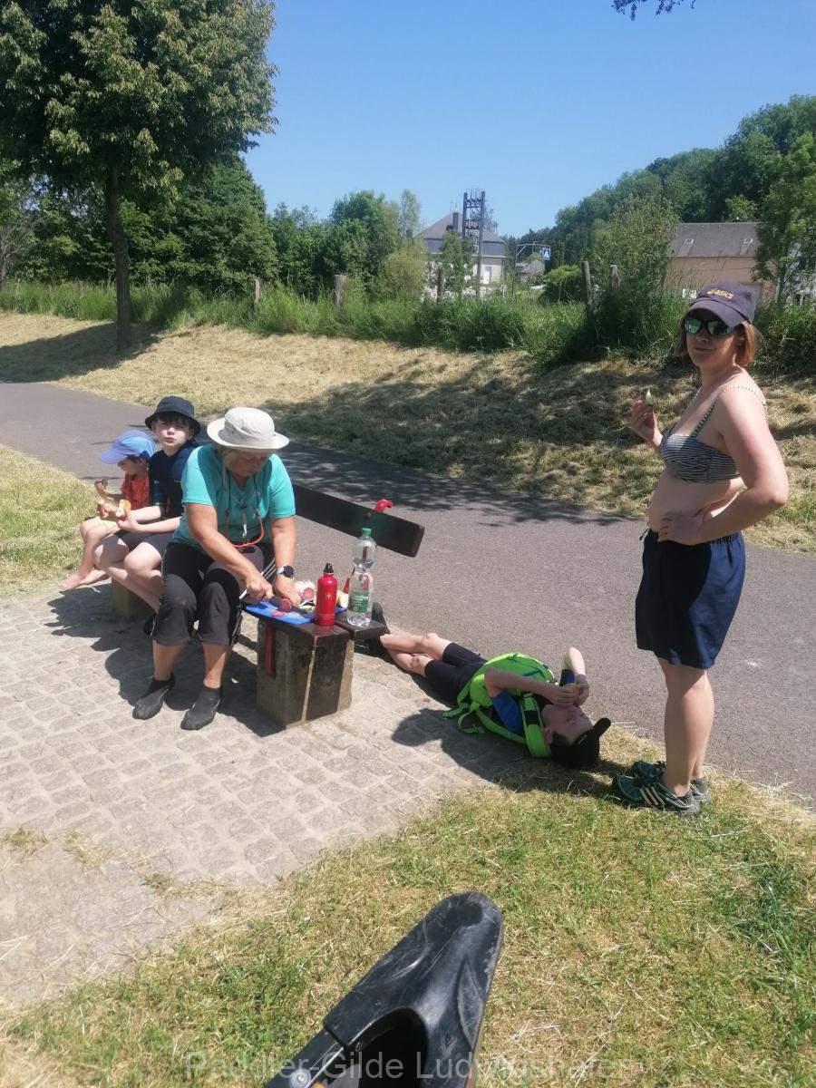Am Sonntagmorgen ging’s von Ettelbrück nach Wallendorf auf den Campingplatz, das sind auch zirka 18 Kilometer. Ein Teil der Jugend hat sich ausgiebig auf dem Wildwasserkanal ausgetobt und hatte dabei einen Riesenspaß. Durch Umbauarbeiten im Fluss in Bettendorf ist die einstige Durchfahrt nicht mehr für alle Boote möglich und die größeren mussten umtragen werden. Die Einer konnten durch das Schütz problemlos durchfahren. Die Querströmung dahinter war enorm – und so musste am Abend Kentertrunk und -eis für die „Retter“ spendiert werden, da es sich der erfahrenste Paddler in der Gruppe nicht nehmen ließ, mit seiner Frau zu kentern.