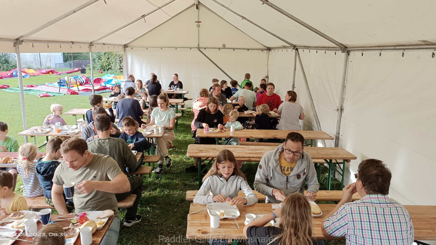 Nach dem  Frühstück, das für jeden Geschmack was zu bieten hatte, wurden die Hüpfburgen wieder in Betrieb genommen und die ersten Zelte abgebaut.
