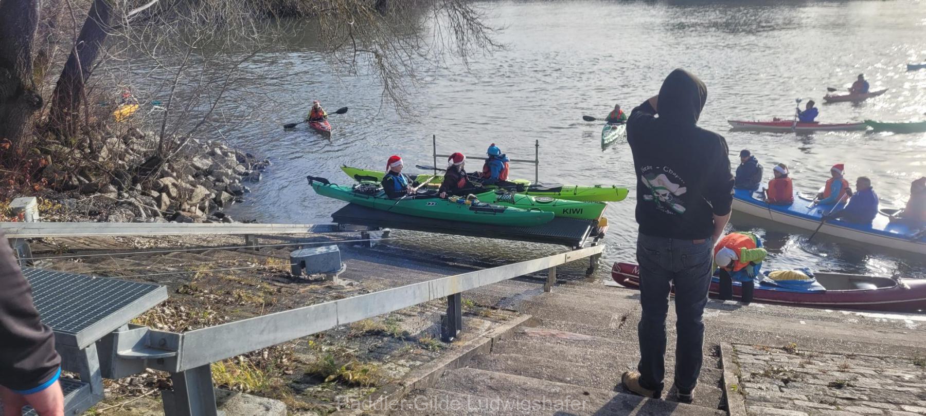 Fünf unentwegte Erwachsene haben sich nicht von der schlechten Wetterwoche beeindrucken lassen und folgten dem Fahrtenplan zur Nikolausfahrt. Beim Einbooten in den Berghäuser Altrhein trafen wir die Kanuten des ESV und paddelten mit ihnen über den Rhein zum Glühweinstand des Mannheimer Kanukreises . Frank war der Erste und empfing uns mit 5 Tassen Glühwein, was wir nicht ablehnen konnten .Bei der Eröffnungsrede wurde den aktiven Glühweinkochern mit einem dreifachen „Ahoi“ gedankt .