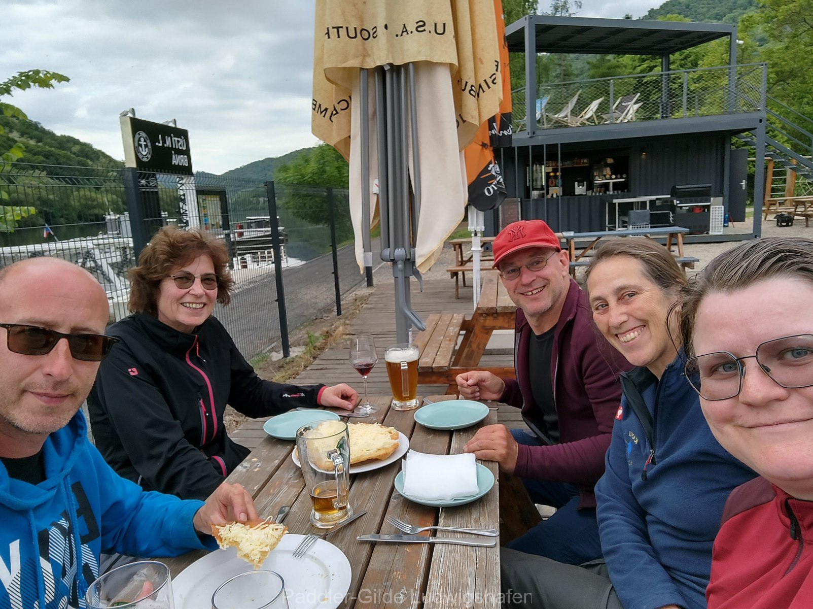 Tags darauf paddelten wir eine längere Strecke bis nach Brná bei Kilometer 771. Der Radler-Campingplatz dort bot alles, was wir nach einem langen Tag brauchten: eine solide Infrastruktur, Verpflegung vor Ort – und eine freundliche Atmosphäre. Für den nächsten Tag war jedoch erneut schlechtes Wetter gemeldet. Wir entschieden uns daher für einen Pausetag. Einige nutzten die Gelegenheit, mit dem Bus ins nahegelegene Ústí nad Labem zu fahren und sich dort die Sehenswürdigkeiten der Stadt anzusehen oder Lebensmittel für die kommenden Tage zu besorgen.