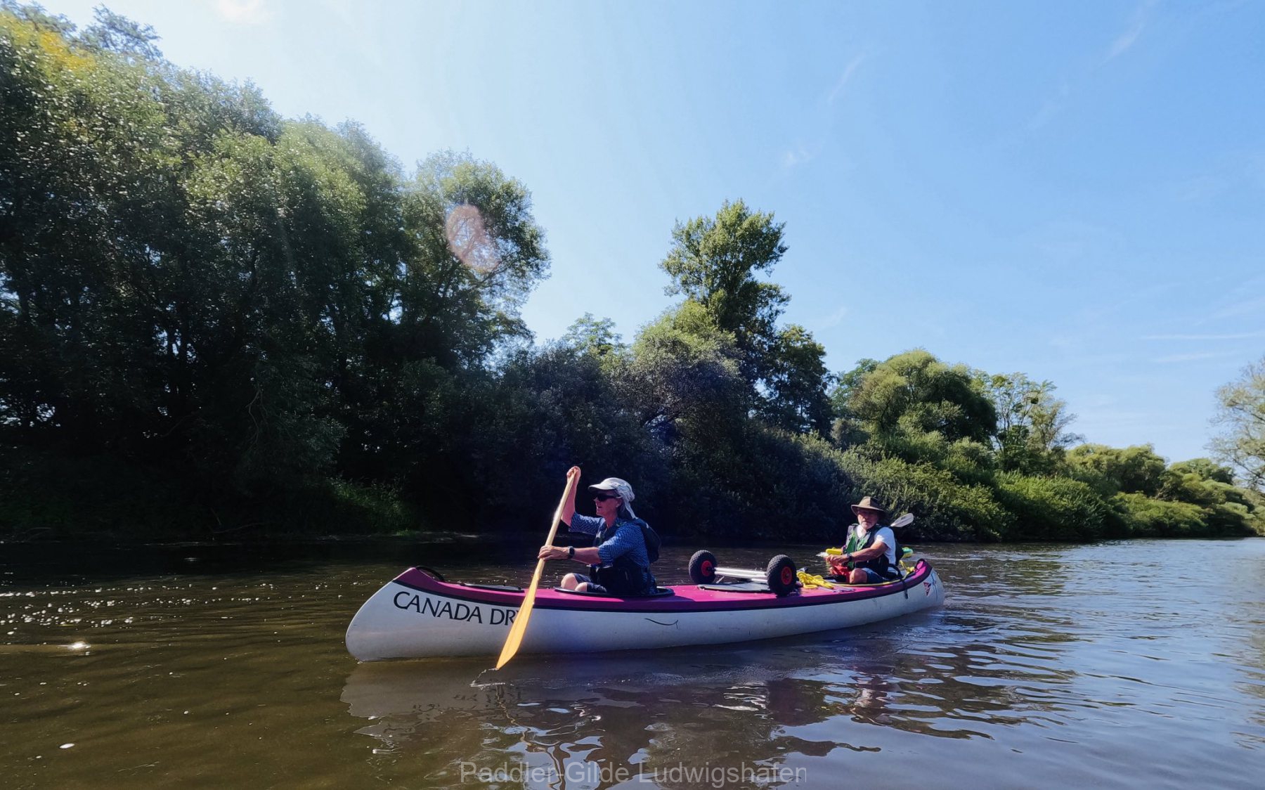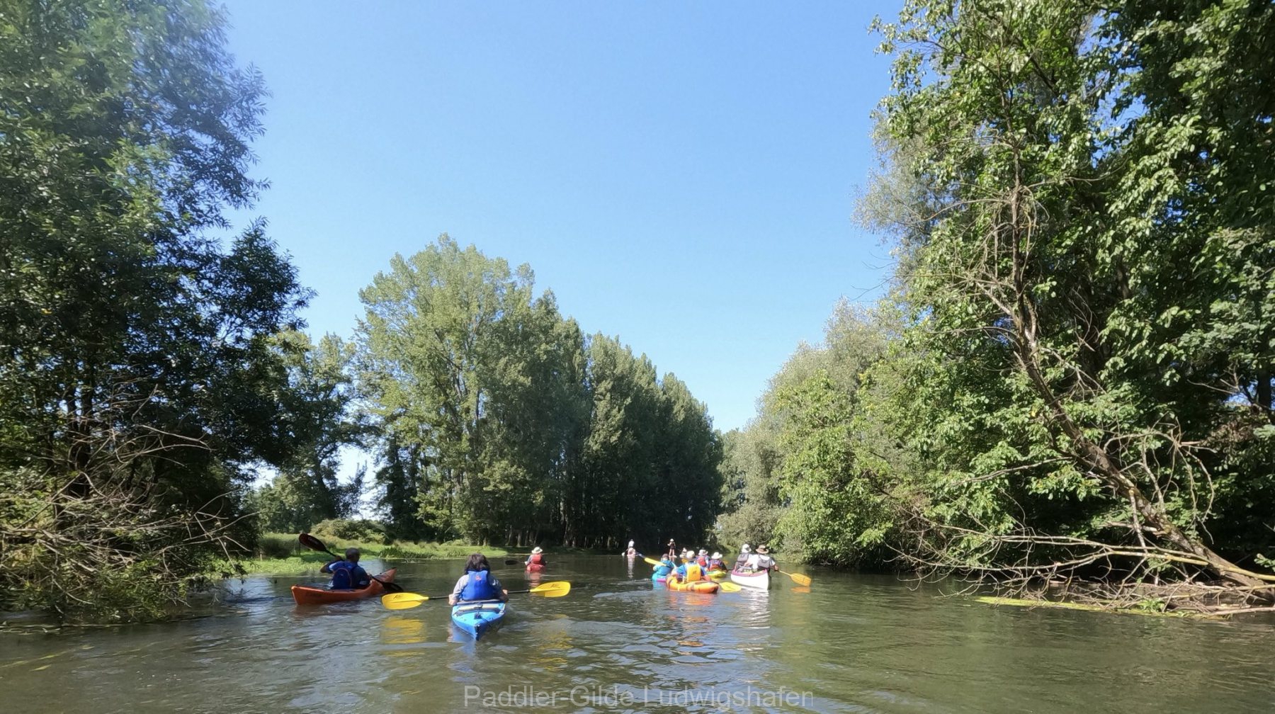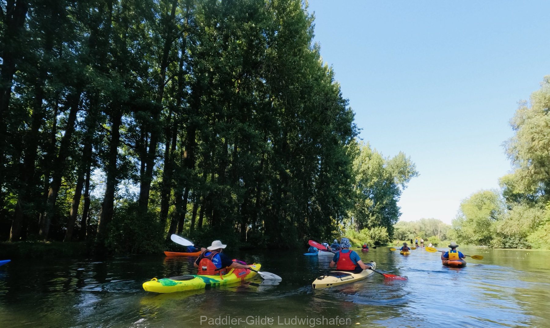 Bei strahlendem Sonnenschein machten sich am Morgen 16 Paddlerinnen und Paddler, darunter drei Gäste vom Skiclub Karlsruhe, auf den Weg zur Moder. Die Einstiegsstelle befand sich in Drusenheim an der Brücke, von wo aus wir dem sanft mäandernden Flusslauf bis kurz vor seine Mündung in den Rhein bei Neuhaeusel folgten. Die Strecke betrug rund 20 Kilometer.