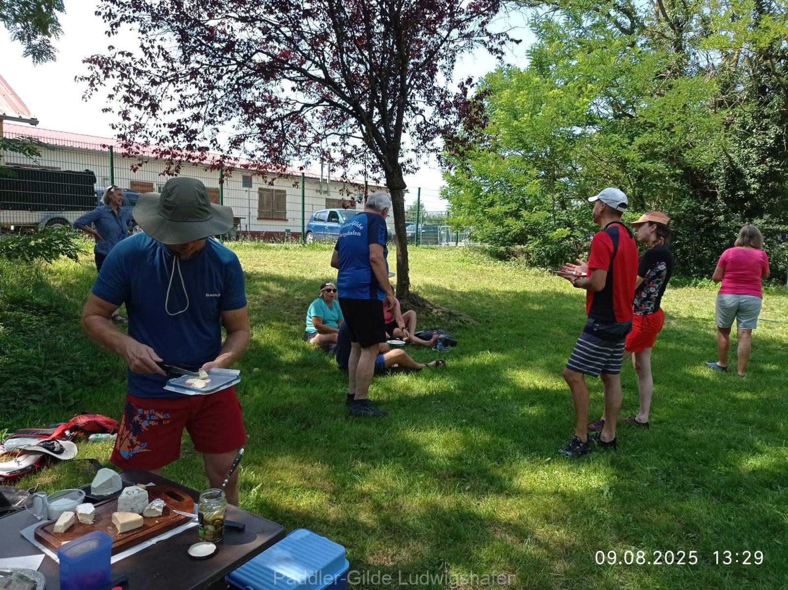 Etwa zur Hälfte der Tour legten wir in Stattmatten eine wohlverdiente Pause ein. Katharina hatte ein liebevoll hergerichtetes Buffet aus Käse und Pastete vorbereitet, das unter freiem Himmel besonders gut schmeckte. Gestärkt und gut gelaunt setzten wir unsere Fahrt fort.