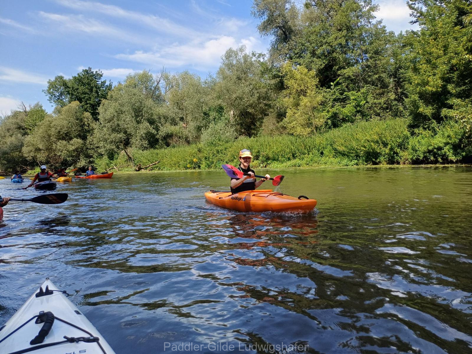 Die Moder, ein malerischer Nebenfluss des Rheins im Elsass, bot uns an diesem Tag ideale Bedingungen: eine leichte Strömung, klares Wasser und grün gesäumte Ufer. Bekannt ist die Moder auch für ihre Eisvögel – die sich an diesem Tag allerdings nicht blicken ließen. Dafür begleiteten uns unterwegs Enten, Gänse und majestätische Schwäne, die den idyllischen Charakter der Tour noch verstärkten.