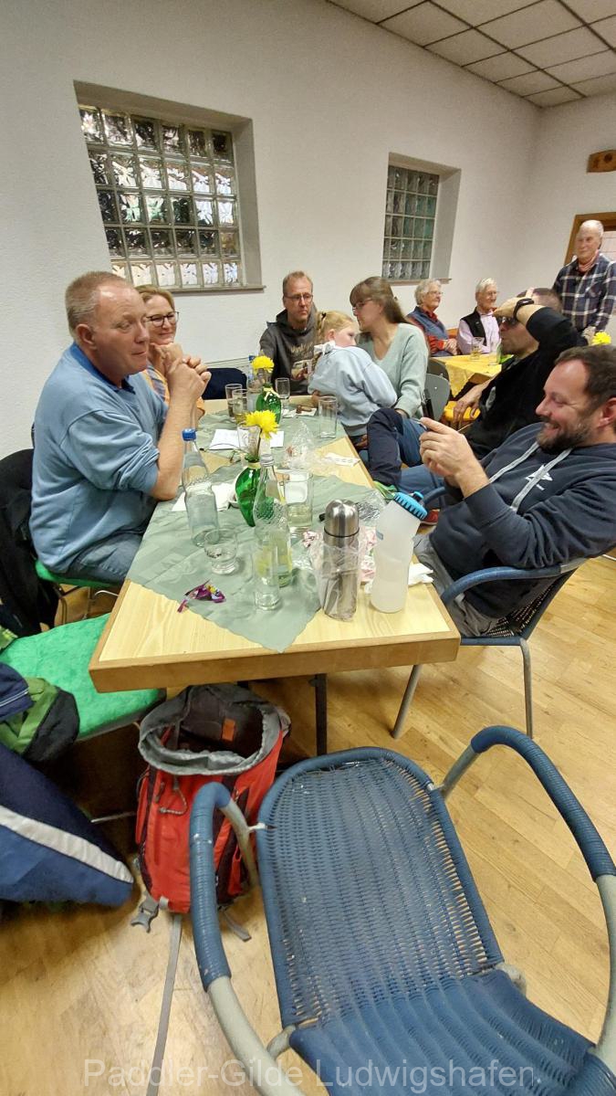 Das Wetter zeigte sich von seiner ungemütlichen Seite: Immer wieder setzte Regen ein. Dennoch ließen sich die Wanderer die Laune nicht verderben und hatten viel Spaß unterwegs. Das Ziel war die einladende Halle der Paddler-Gilde, die nach der Wanderung für eine versöhnliche und gemütliche Atmosphäre sorgte.