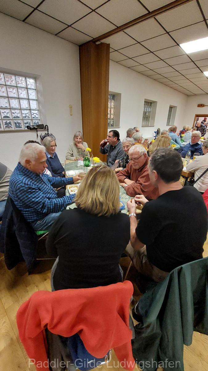 Wie jedes Jahr gab es die berühmte „Pfälzer Dreieinigkeit“: Bratwurst, Leberknödel und Saumagen. Dazu wurden hausgemachtes Sauerkraut und frisches Brot gereicht. Auch vegane Würstchen standen auf der Speisekarte, sodass für jeden Geschmack etwas dabei war. Die Teilnehmer ließen es sich gutgehen und genossen die Gemeinschaft. Wer nicht zu Fuß unterwegs war, nutzte den Bus, das eigene Auto oder ließ sich im Kleinbus der Paddler-Gilde chauffieren. Besonders die Kinder hatten Freude an der „Matschwanderung“, für die sie später mit Süßigkeiten am Lagerfeuer belohnt wurden.